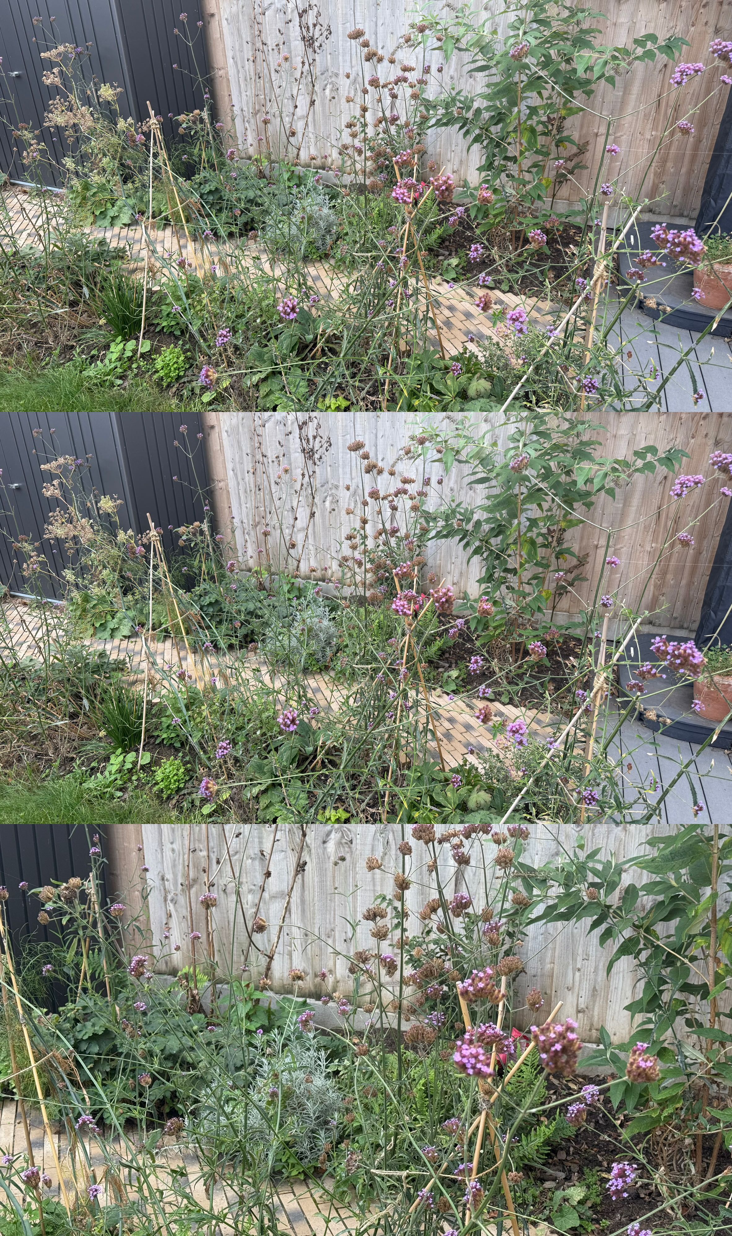 A quick recap on how the lens on an interchangeable lens SLR or mirror-less type camera operates, as I know many people use their phone to take photos, so this is less obvious. The focal length of a camera lens determines the angle of view and thus how much of a given scene the photographer will see in the viewfinder. A wide-angle lens like a 24 mm will show more of a scene than a 105 mm telephoto lens, which will pick out detail in the scene. The image below shows an wide angle view moving through a normal view to a telephoto of my garden in late summer. The composite image ranges from 24 mm to 48 mm and through to 120 mm, I’ve used my phone to take these pictures, so the same principles apply.